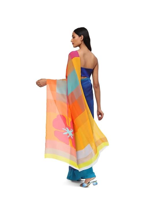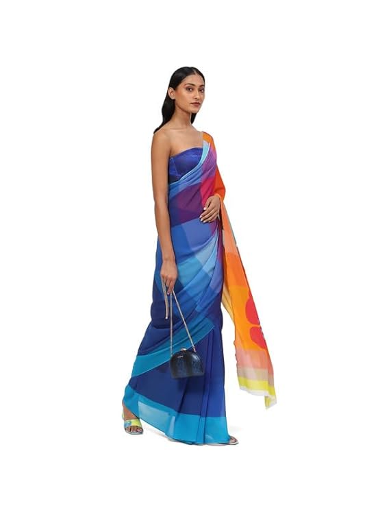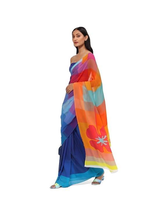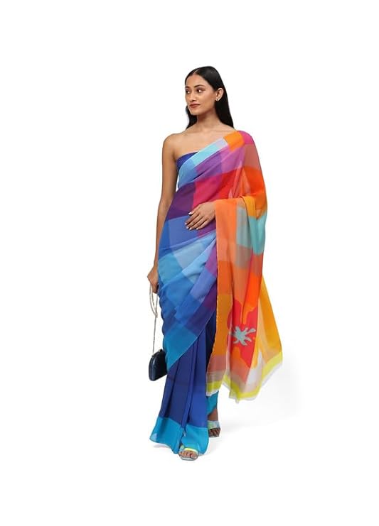- Colorful and bold, this georgette will turn heads. Its geometric patterns add structure and careful symmetry. An enchanting sight under the moonlight.